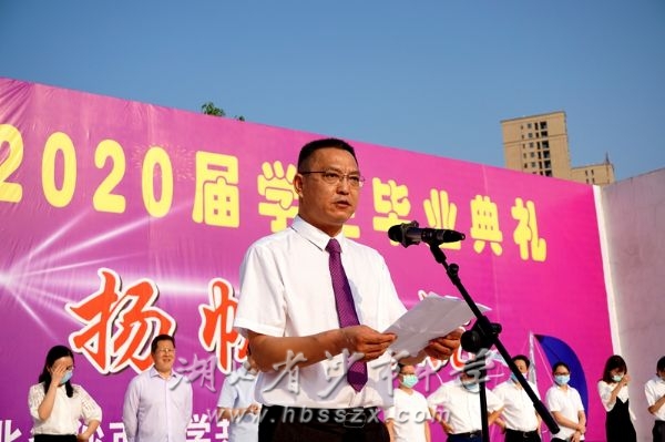 2020年6月25日,农历端午节,碧空如洗,晴明万里。沙市中学2020届学生毕业典礼在学校体育场隆重举行。出席本次毕业典礼的校领导有学校全体校级领导,高三教师、学生和部分家长代表。