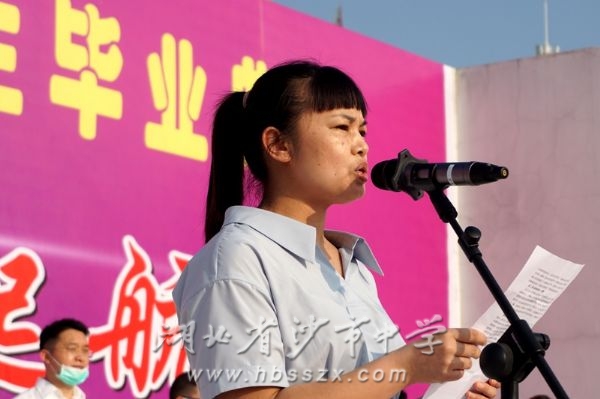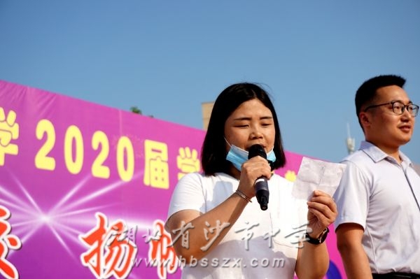 高三(5)班项子恒同学的母亲作为家长代表发表讲话。她感激为孩子们开阔视野、增长才干、丰富阅历、陶冶情操提供了丰厚的教育沃土的沙市中学全体老师;嘱托同学们牢记感恩,心存敬畏,以梦为马,不负韶华,亮剑高考,不留遗憾。