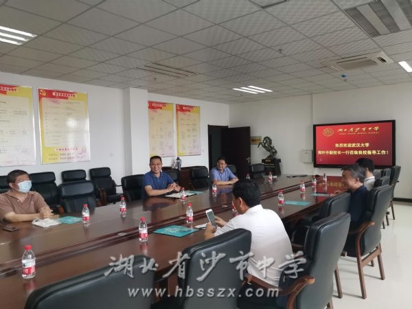 与我校高三部分班主任进行座谈 7月3日,武汉大学副校长周叶中、副院长王福、副处长邓勇来到我校进行招生宣讲,学校校长熊礼才、副校长徐善慧、高三年级组长张绍开热情地接待来宾。