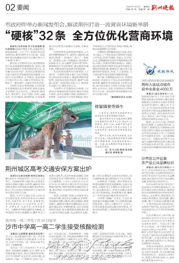 《荆州晚报》2020年7月3日报道我校高一高二学生进行核酸检测