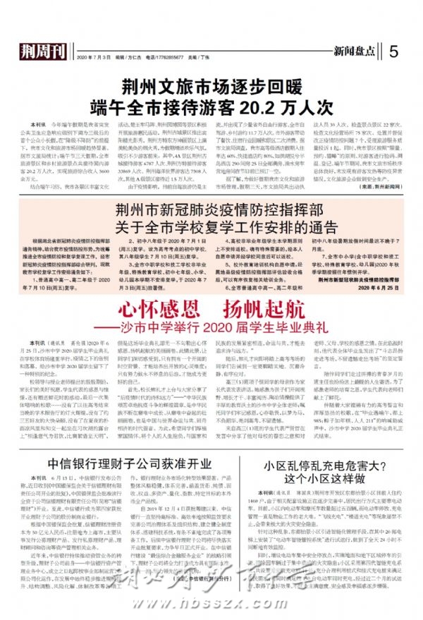 《荆周刊》2020年7月3日报道我校举行2020届学生毕业典礼