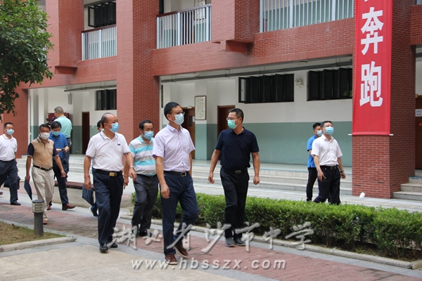王守卫主席一行认真了解了我校卫生习惯宣传教育工作,实地察看了学校食堂、校园洗手设施、防疫物资储存室等,听取了熊礼才校长就学校健康教育、校园安全、卫生防疫等方面的工作汇报。