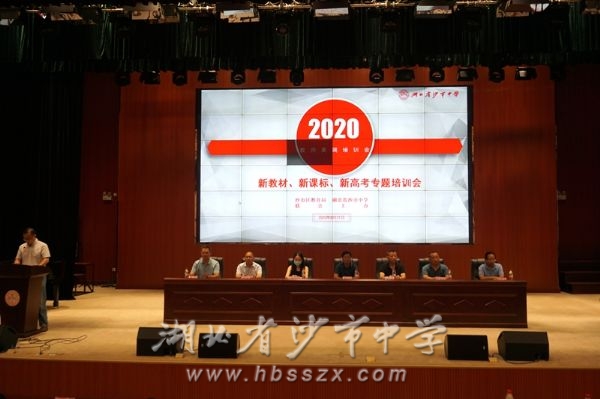 参会的专家和各学校领导在主席台就座 在新学期开学之际,8月21日,沙市区教育局与沙市中学联合举办了第三届新教材、新课标、新高考教师高端培训会,沙市区各高中学校领导和学科负责人、沙市中学全体教师及学校对口支援的巴东二中领导和教师代表参加了培训。