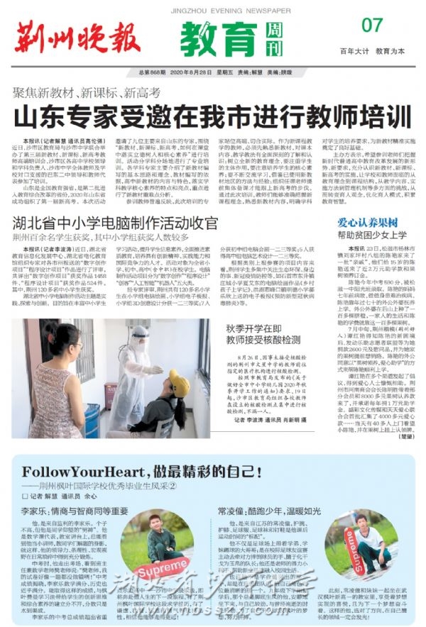 《荆州晚报》2020年8月28日报道山东专家在我校进行新高考教师高端培训