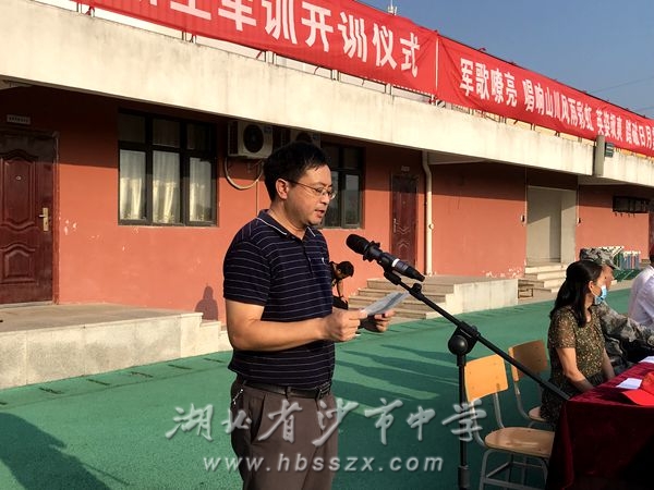 8月30日上午七点半,我校在学校操场隆重举行了2020级新生军训开训仪式。仪式由学工处副主任张珺主持,全体校领导、高一年级班主任、全体2020级高一新生及荆州市公安消防支队领导与教官参加。