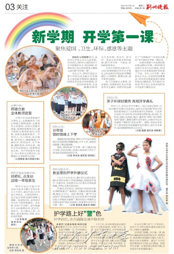 《荆州晚报》2020年9月2日报道我校秋季开学典礼