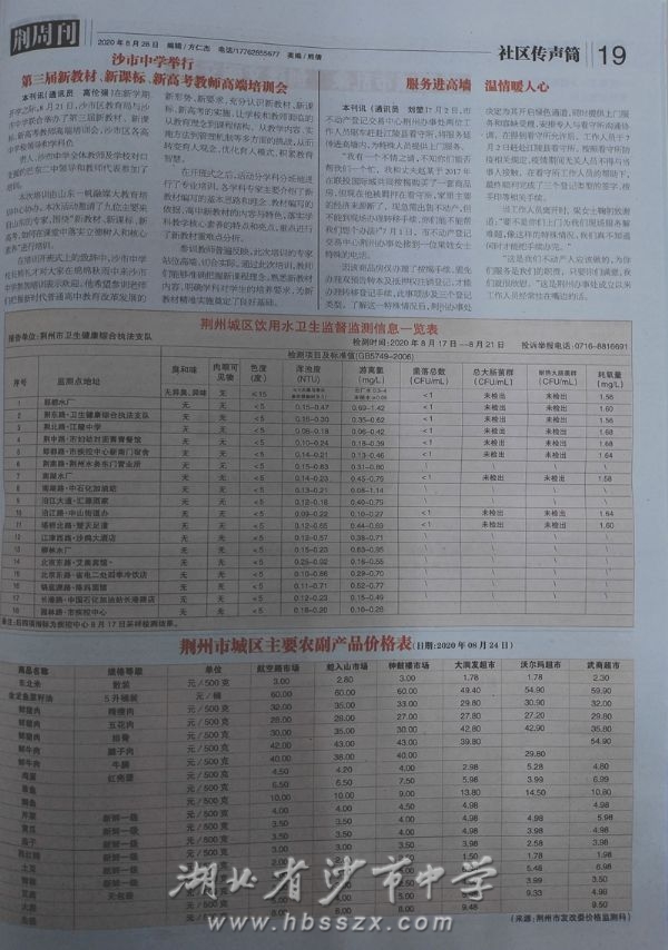 《荆周刊》2020年8月28日报道我校进行新教材、新课标、新高考教师高端培训