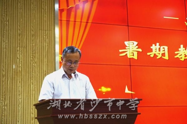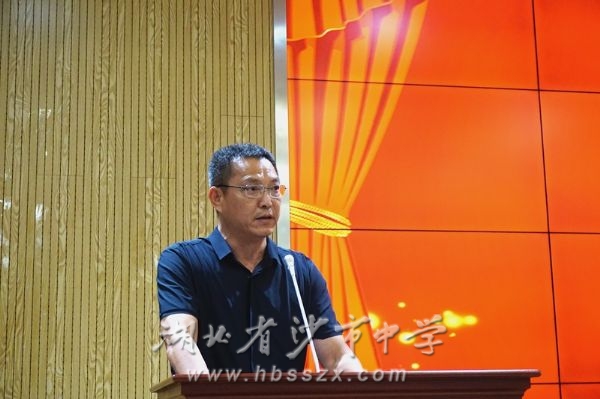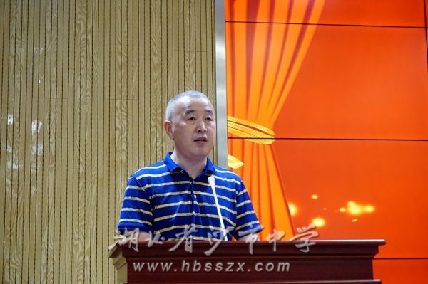 沙市中学党委书记、校长熊礼才致辞。他介绍了本次受表彰的人员,有坚守讲坛、矢志如初的教坛精英,有整天和学生摸爬滚打在一起的班主任,有与数据为伴、与维修为伍的后勤人员,还有疫情中用于冲锋的先进个人……他着重指出其中的两类典型,一类是抗疫先进个人,一类是新教材培训心得体会获奖者。前者在2020年与疫情无烟战场战斗中,服从安排,戮力同心,筑起了从校门到教室、从食堂到宿舍、从课堂到操场的一道道防线,确保了高三年级顺利完成高考及高一高二二十天的复学任务;后者在新高考新教材的竞技场上角逐,研究新课标,决胜新高考。熊校长强调,教师的生命史就是一部现代人的学习和成长史,教师的学习力决定着教师的素质竞争力,学校团队的学习力决定着学校的创新力,也决定着学校培养有学习力和创新力学生的能力和水平。他鼓励老师们在丰富的教学实践中钻研教育教学课题,从日常的教学行为中思考提炼,最终成为拥有自己独特的教学风格和教学思想的教师。