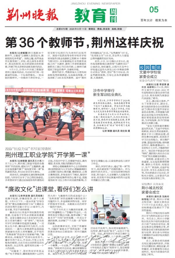 《荆州晚报》2020年9月11日报道我校举行新生军训结业典礼