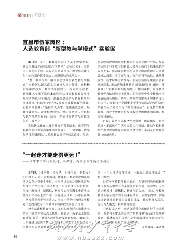 《湖北教育》杂志8月号报道我校举行新课标、新教材、新高考教师高端培训会