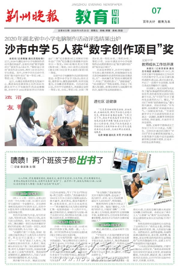 《荆州晚报》2020年9月25日报道我校5人获"数字创作项目"奖