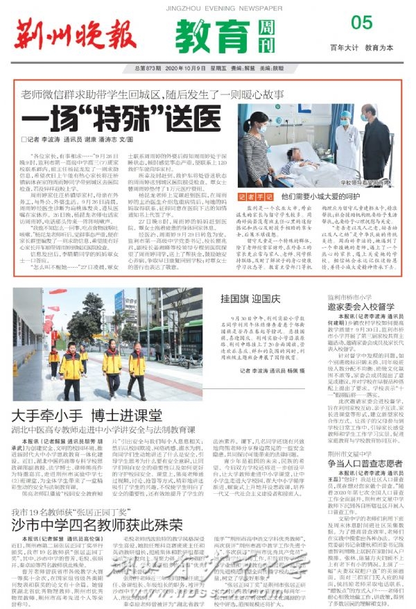 《荆州晚报》2020年10月9日报道我校四名教师荣获张居正园丁奖