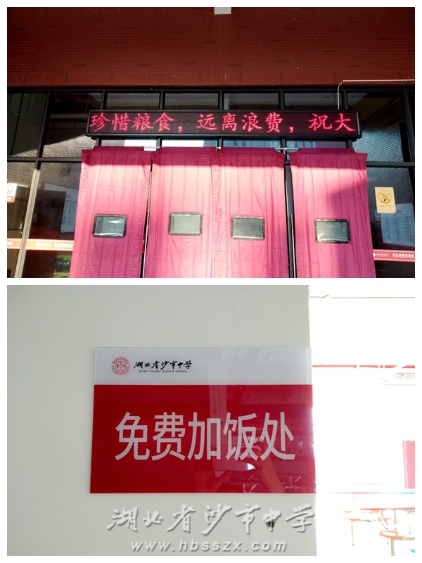 学校积极加强宣传教育,在食堂门外电子显示屏、专题宣传栏以及入口处设置了杜绝浪费的相关宣传标识,引导广大师生文明就餐,培养节约习惯。学生窗口推出半份菜,学生可以选择一份或者半份菜,避免“舌尖上的浪费”。食堂工作人员还根据男女生餐饮特点,实行适当少打饭量,设置“免费加饭处”,方便学生就餐。在教师食堂中,采取自助餐的形式进行就餐,做到适量取餐,厉行节约。