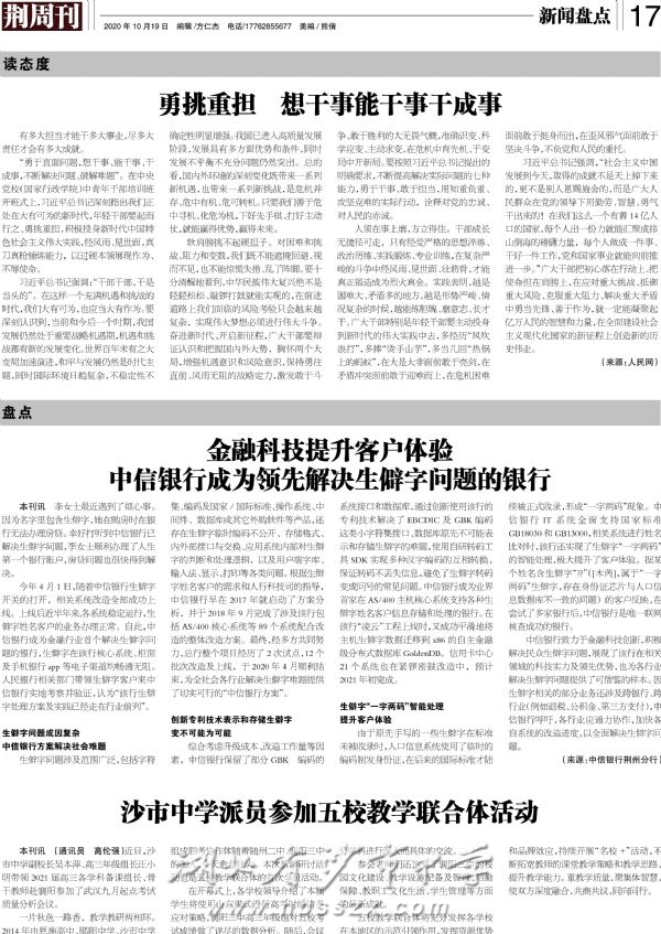 《荆周刊》2020年10月19日报道我校参加五校教学联合体活动
