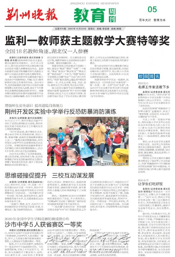 《荆州晚报》2020年10月23日报道我校学科竞赛取得可喜成绩