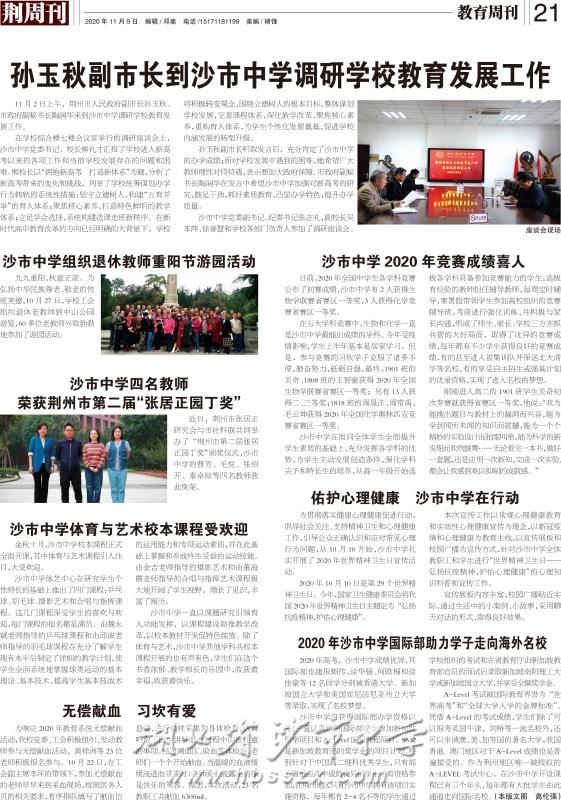 《荆周刊》2020年11月9日报道沙市中学八事