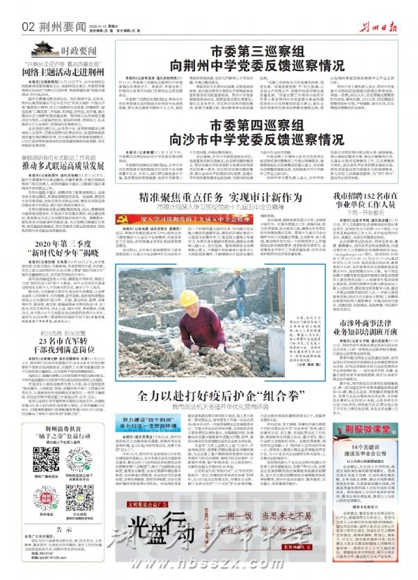 《荆州日报》2020年11月13日报道市委第四巡察组向我校党委反馈巡察情况