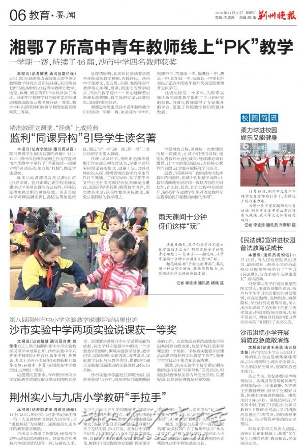 《荆州晚报》2020年11月20日报道我校教师在湘鄂7所高中教学"PK"中获奖