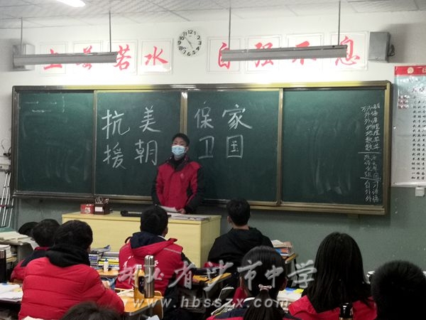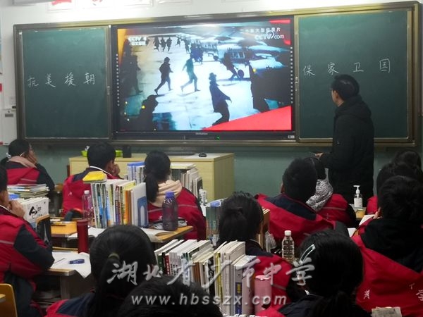 同学们通过视频、新闻报道以及班主任的讲述等多种形式了解了抗美援朝的历史以及在战争中涌现的英雄人物及其英勇事迹;学习到了伟大的中国人民志愿军在与敌人作战力量和作战装备存在巨大的悬殊的情况下,以顽强不屈的意志、保家卫国的决心,克服万难、迎难而上、舍生忘死、浴血奋战,发扬“一不怕苦、二不怕死”的战斗精神;也因此更加明白了战争的残酷和懂得和平的来之不易。