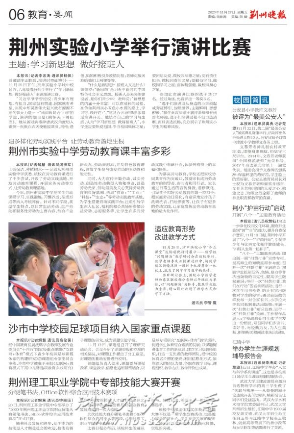 《荆州晚报》2020年11月27日报道我校校园足球项目纳入国家重点课题