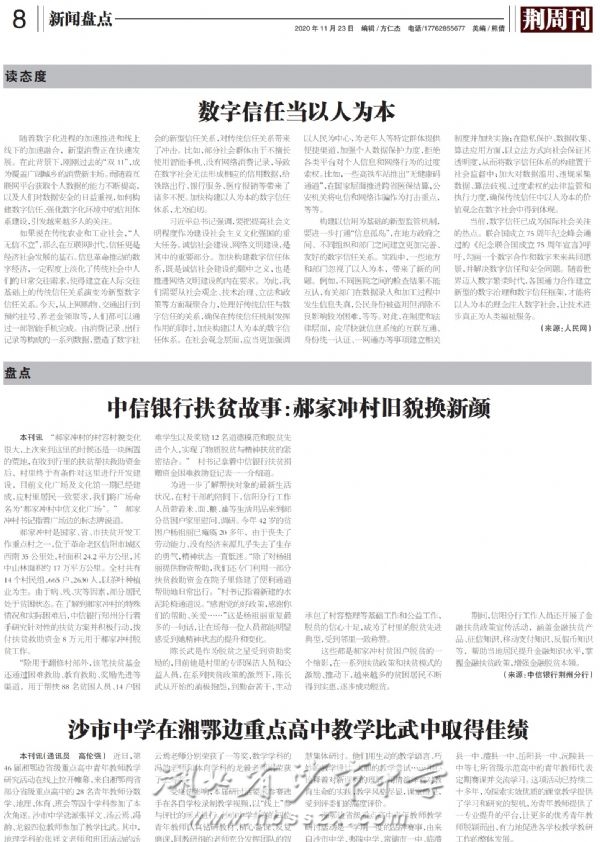 《荆周刊》2020年11月23日报道我校教师在湘鄂边重点高中教学比武中获佳绩