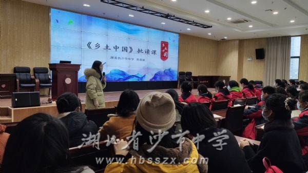 黄嘉懿老师上调研课 接着沙市中学黄嘉懿老师讲授观摩示范课《< 乡土中国>批读课》,以黄公望《富春山居图》、王羲之《快雪时晴帖》等名家作品引出何为批读?怎么批?批什么?整个课堂教学语言注重文学性,词汇丰富,文采飞扬,语调语气抑扬顿挫,突出了黄老师深厚的文化功底,并将其表现在了课堂的许多方面,吸引80余名学生认真观摩。
