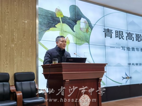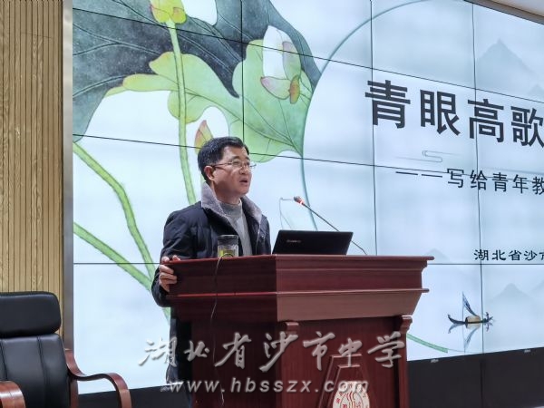 丁家顺老师进行讲座 观摩课后,沙市中学语文教研组长、正高级教师丁家顺进行讲座,围绕主题“青眼高歌望尔曹——写给青年教师的三句话”,对即将走向讲台的师范生给出了全方位的建议。他谈到,新课程的背景下,新的素养目标、新的技术挑战,要求每一个教师不忘初心、立足课堂、教研相长、与时俱进。一名优秀的教师应该敬畏教育的伟大价值,担当育人的社会使命,忠诚而有情怀;应该怀抱危机意识、勤于钻研、力求建树,踏实而有作为;应该将学生的终生发展同自己的职业发展相结合,磨练耐心、学习包容、不断更新知识贮备,高尚而有风骨。丁老师的讲座,饱含激情,一个个鲜活的案例,信手拈来,幽默的话语,思辨的哲言,不时引来与会者的热烈掌声。