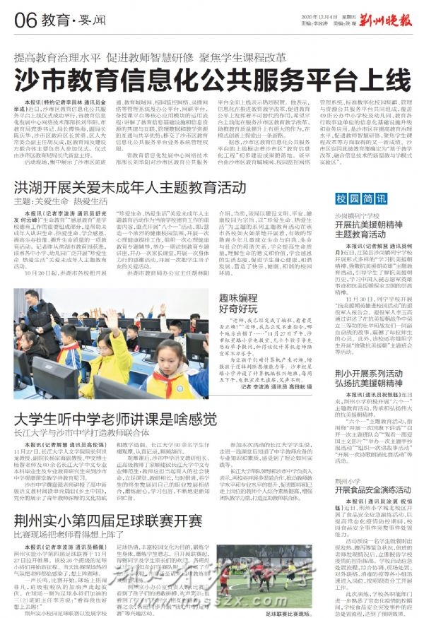 《荆州晚报》2020年12月4日报道我校与长江大学打造教师互助联合体