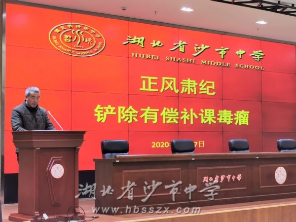 校党委书记、校长熊礼才讲话 为促进我校教育事业健康发展,进一步加强教师职业道德建设,规范学校办学行为和教师从教行为,有效遏制有偿补课现象,12月7日,我校召开了禁止有偿补课警示教育大会。全体教职工齐聚综合楼二楼,接受禁止有偿补课警示教育。