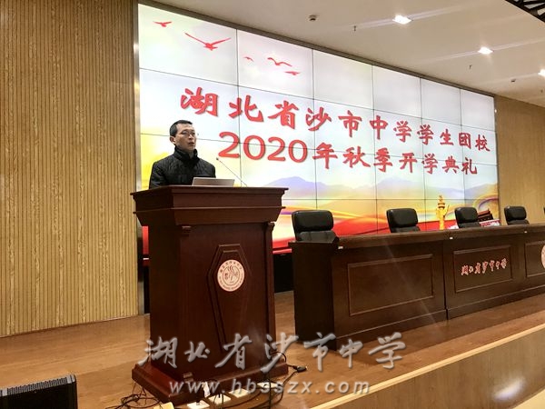 2020年12月4日上午,沙市中学学生团校2020年秋季开班典礼在综合楼二楼会议室举行。会议由我学校团委学生会主席团秘书长齐书雯同学主持,学工处主任李雪冰、学工处副主任张珺、校团委书记黄嘉懿均出席会议。