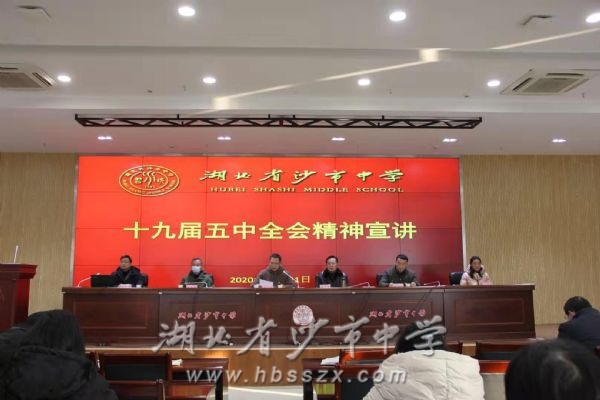 全体党员宣誓 在全党上下深入学习贯彻党的十九届五中全会精神之际,根据荆州市教育局《关于开展党的十九届五中全会精神集中学习宣讲工作的通知》和《关于做好局机关及市直教育系统2020年12月份“支部主题党日”活动的通知》,结合学校实际,12月21日下午,我校全体教职工齐聚综合楼二楼会议室,深入学习十九届五中全会精神。