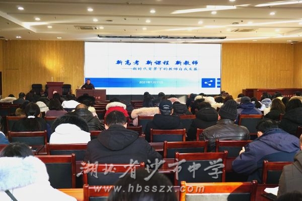 1月11日下午,沙市中学召开2020秋季学期"新课堂"教学研讨总结大会,学校党委书记、校长熊礼才做了题为“新高考、新课程、新教师--新时代背景下的教师自我发展”的报告,赵文华副校长对本学期“新课堂”教学研讨活动进行总结,学校全体教师出席会议,会议由教导处主任肖述友主持。