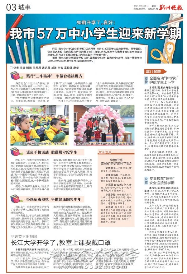 《荆州晚报》2021年3月1日报道我校春季开学典礼