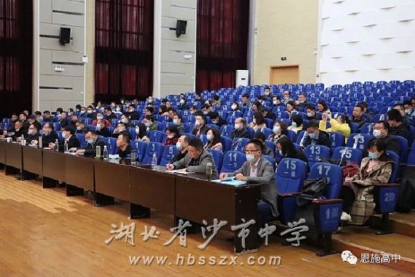 与会六校老师 3月28日下午两点,沙市中学高二年级各学科备课组组长在赵文华副校长、魏遵平年长的带领下,赶赴恩施高中参加湖北省部分重点高中六校协作体“YES”交流会。