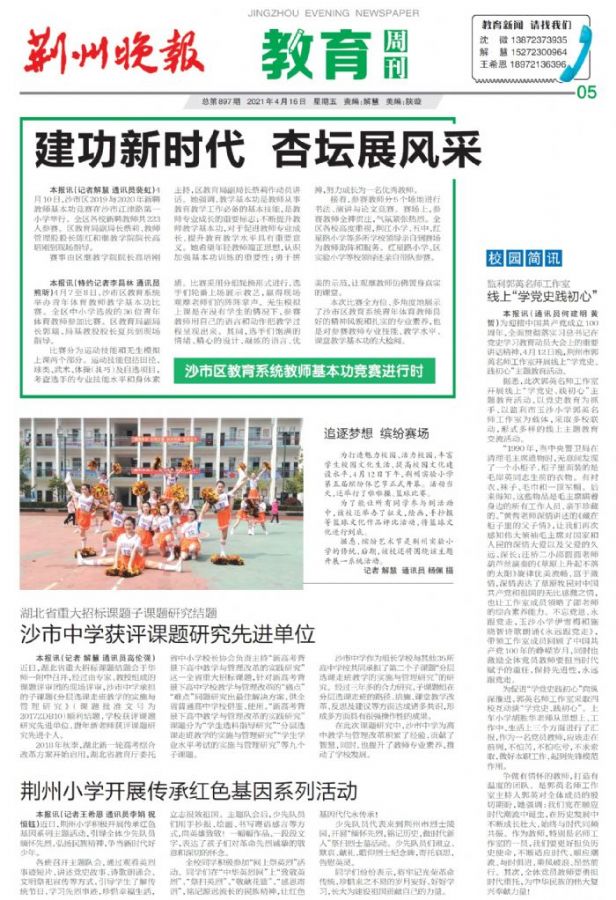 《荆州晚报》2021年4月16日报道我校获评课题研究先进单位