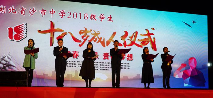 以“成长、感恩、责任、梦想”为主题的成人仪式在一段记录2018级学生成长的视频中启幕。视频中,本届学生从蹒跚起步、呀呀学语,到进入幼儿园、小学、初中,直至进入沙市中学参加军训、体育艺术节、高校寻梦、社会实践、暑期研学的生活和学习点滴在视频短片中一一闪现,让人唏嘘感慨:时间都去哪儿了?成长总是让人猝不及防,流逝的是岁月,留下的是感动与成长。