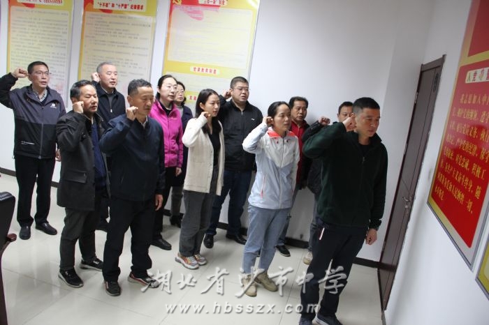 行政后勤党支部宣誓 根据市委组织部、市直机关工委的要求,结合我校实际,4月20日下午,湖北省沙市中学各支部组织开展了四月主题党日活动。活动由各支部书记主持,全体党员分支部参加了活动。