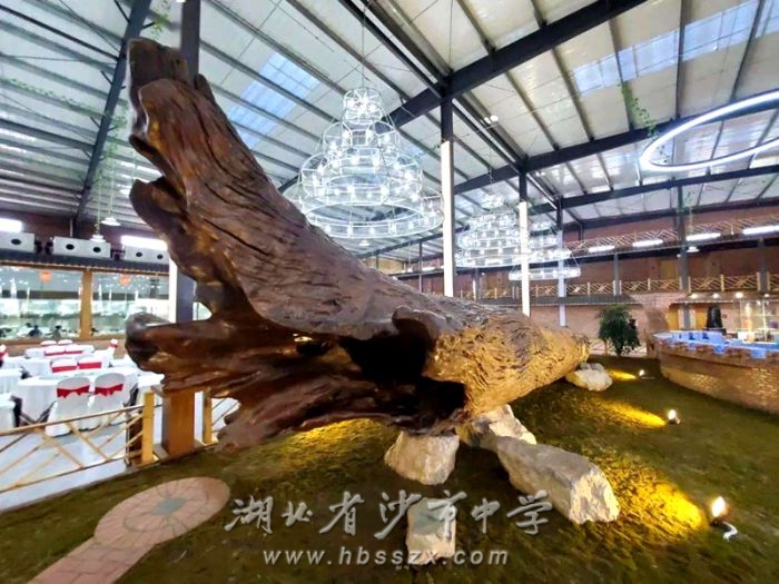 “东方神木馆”,位于湖北沙市岑河镇木垸村。2017年11月1日,岑河木垸村地下5米发现巨大乌木(阴沉木),该树长达15.6米,最大直径1.9米,树围约5.5米左右。经初步认定,该树是金丝楠阴沉木,树龄应在2000年以上,沉睡地底3000年以上。参观中,老教师们了解到,金丝楠木在古代也称帝王木,属皇宫专用。帝王龙椅宝座等,都是选用优质金丝楠木。阴沉木是大自然留给人类的瑰宝,是不可再生的稀缺资源,每件金丝楠阴沉木都历经千百年的风雨沧桑。老教师们驻足神木,仔细端详树上每一丝文理,仿佛是看自己的不凡人生。