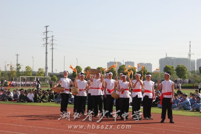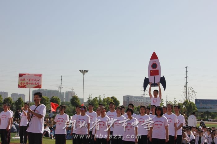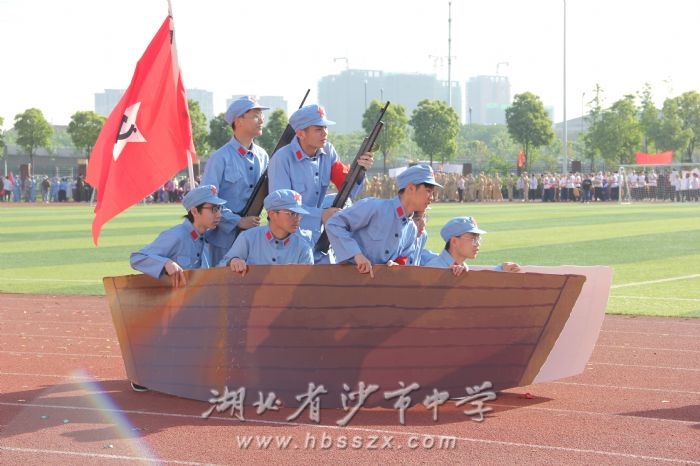 学生节目:《两弹一星》 “十月革命一声炮响、新中国建立、 改革开放、经济腾飞”4月29日,一场以庆祝建党百年为主题的体育艺术节入场式展演活动在沙市中学隆重上演,该校高一高二年级全体师生共同参与,将学党史与学生活动结合起来,为建党一百周年献上一份大礼。