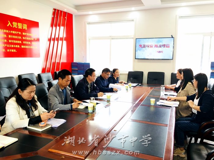 工作室成员沙市中学的何军平老师、荆州中学的肖菁老师、阳虎老师,文星中学的黄旭老师、实验小学的鲁霞老师,大家在和谐的氛围里,一起谈了这次活动的收获、启发和思考,工作室主持人沙市中学的刘春老师对示范课和汇报做最后的点评和发言,并对下一阶段的工作做了部署。