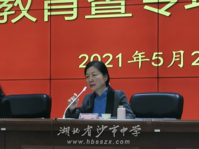最后,市教育局党组成员、副局长万玲作总结讲话。她希望沙市中学能够发挥省级示范高中的引领作用,把握正确方向,认真贯彻落实教育部师德师风建设相关会议精神,狠抓《新时代中小学教师职业行为十项准则》落地落实,希望沙市中学教师能够坚定理想信念,涵养高尚师德,以赤诚之心、奉献之心、仁爱之心投身教育事业,为建党100周年献礼。