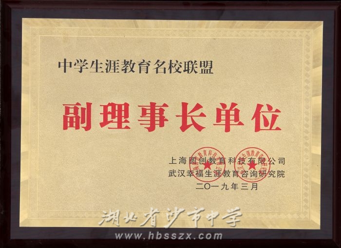 2019年03月被评为中学生涯教育名校联盟副理事长单位