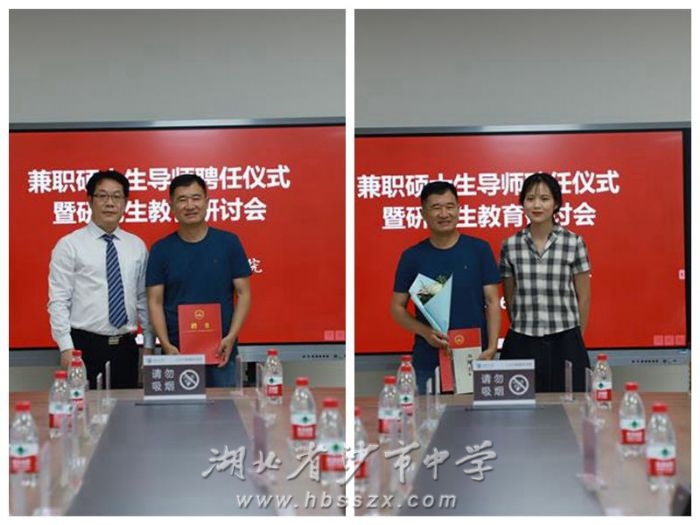 聘任仪式上,何世龙为受聘教师颁发了聘书,研究生给兼职硕导呈拜师贴、献花。
