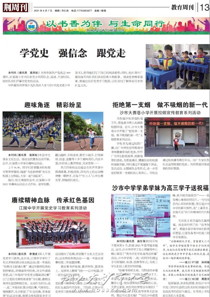 《荆周刊》2021年6月7日报道我校为高三学子暖心祝福