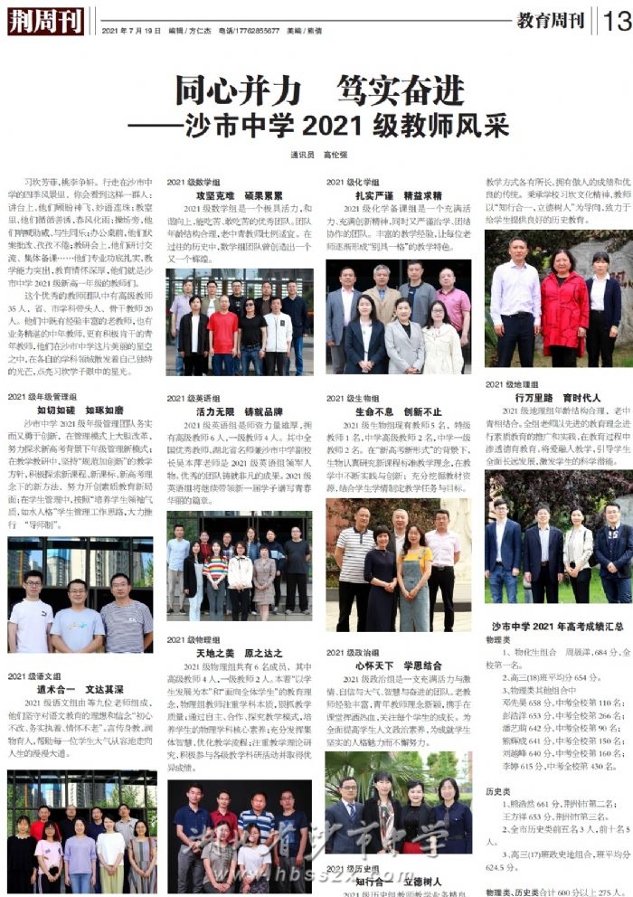 《荆周刊》2021年7月19日专版报道我校新高一各备课组教师风采