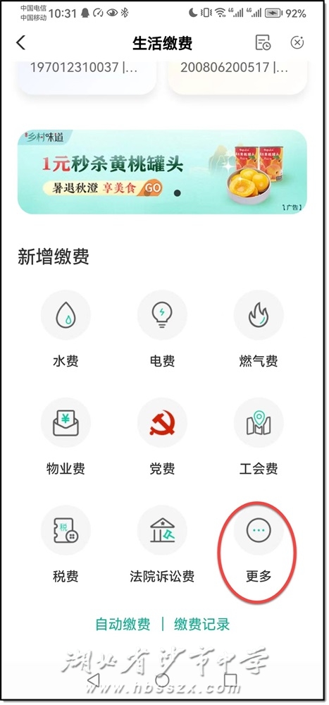 二、在“生活缴费”页面,往下找到“更多”,点击进入。