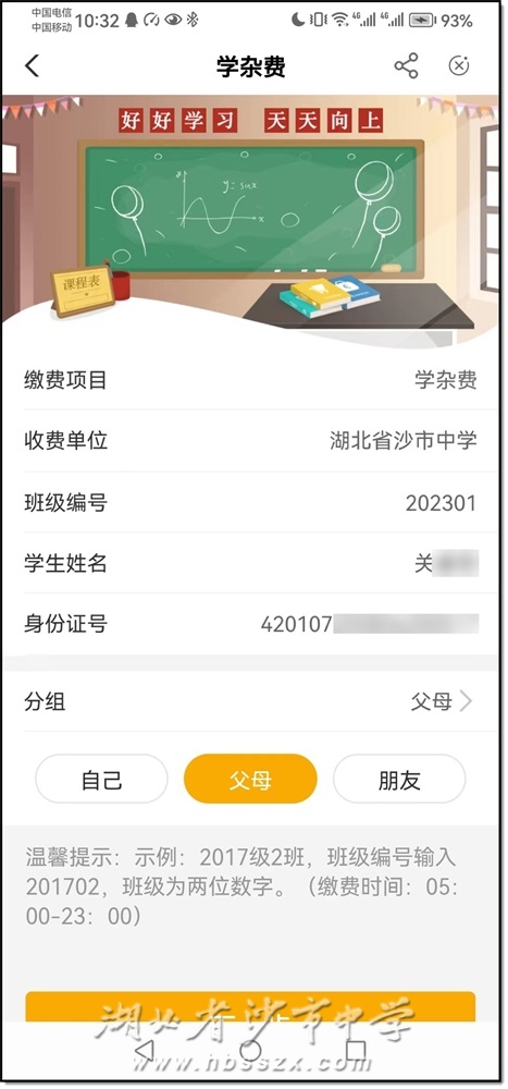 需要注意的是:家长需在APP上规定的时间范围内缴费。