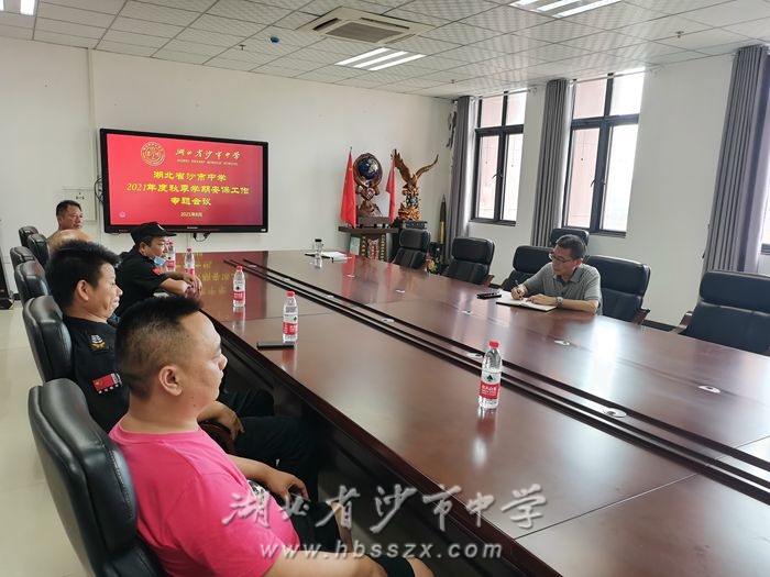 为加强学校安全工作,保障学校开学工作顺利进行,根据市教育局要求,8月29日,我校召开了新学期安保工作专题会议。会议由学校主管安全工作的李昌坤主任主持,邀请了分管领导胡直主席参加,学校全体安保人员、保安公司杨经理参加会议。