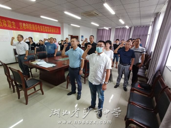 重温入党誓词 根据市委组织部、市直机关工委的要求,结合我校实际,9月6日下午,湖北省沙市中学各支部组织开展了八月主题党日活动。活动由各支部书记主持,全体党员参加了活动。