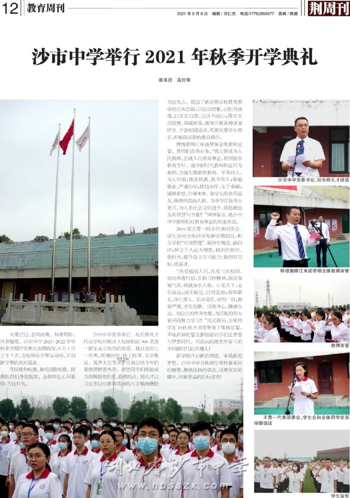《荆周刊》2021年9月6日报道我校秋季学期开学典礼